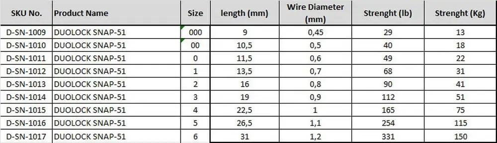 BKK Duolock Snap-51 are produced from high quality stainless steel to avoid rust. Precision shaping and tempering optimize strength and elasticity. Fine chemical polishing creates a smooth surface that prevents line damage