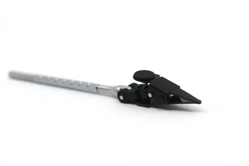 Roterende hackleklemme fra C&F med elastomer gummi som demper bevegelsene og holder jevnt trykk slik at hackle ikke ryker.