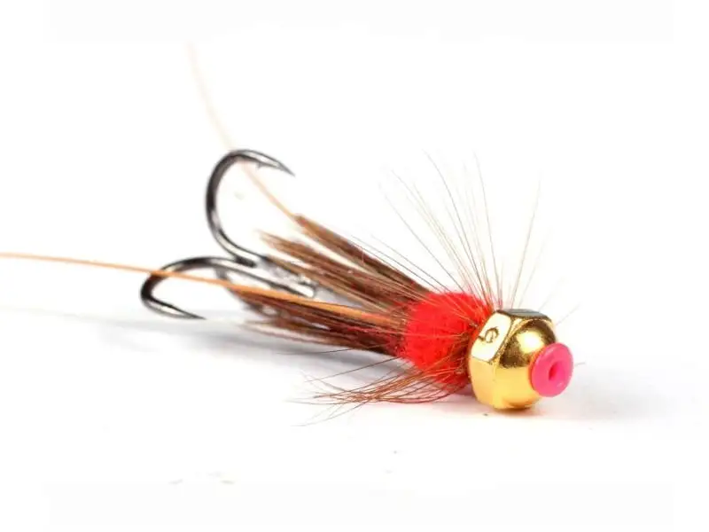 Red Frances Hexagon er den tradisjonelle fargen som fanger og fanger, med vårt UV garn er den enda bedre! Dette er små tunge fluer med tunsten hode som raskt kommer ned til laksen!