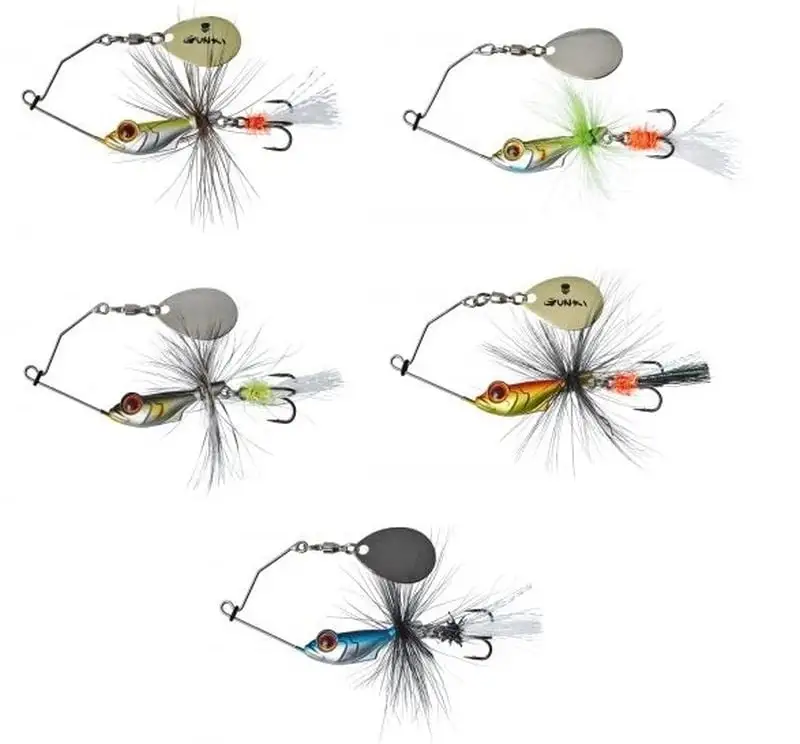The ALVIN is a compact mini spinnerbait designed to imitate a small fish. The prefect lure for precision casting to explore every centimetre of a swim. The lure flutters on the drop and works even on the slowest retrieves. Ultra-stable with a Colorado blade for maximum vibration without pulling too hard on the rod. Fitted with a feather skirt and an attractive teaser made from tinsel and other synthetic fibres giving the fish a target point when hitting the lure. More importantly the teaser helps keep the hook moving in the water so there is more chance of a hook up even if fish are just tentatively mouthing the bait. The ALVIN imitates perfectly summer prey fish targeting everything from big trout in strong flows to fishing in and around weedbeds. Weighted with a Bismth-Tin compound. Hook no.8.
