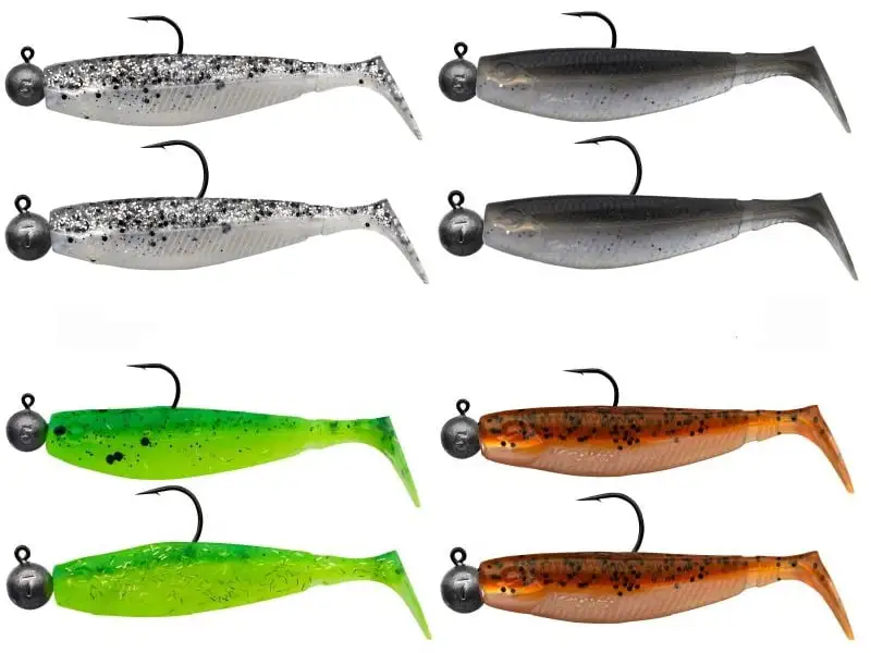 Kommer ferdig rigget med jigghoder. Den ene med 7gr og den andre med 10gr med en ultra skarp krok i str. 4/0 som kroker godt.