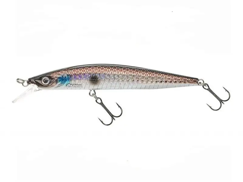 When cranked the GAMERA SLIM SP has a tight, lively swimming action. It does not create a lot of water turbulence relying on visual attraction with the flanks provocatively flashing on every move. This finesse jerk-bait has one other deadly built-in attraction-the “roll twitch”. The rear of the head section is angled downwards and this provokes a stationary rolling lunge when twitched with a slack line. This ability to roll without moving means you can keep twitching the bait over the tightest of likely fish holding spots –like a hole in a bed of lilies.