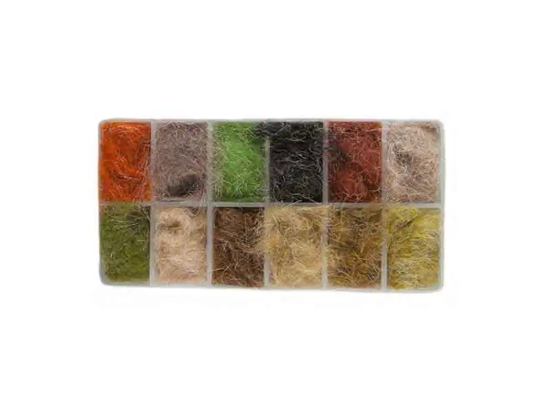 Dispenser med 12 farger av dubbing for nymfer våtfluer og streamere.