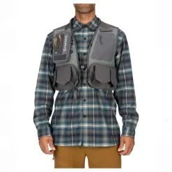 A comfortable fishing vest that holds tons of tackle and keeps you cool. All you ever really need is a hand on the rod and a foot in the river, but bringing along an arsenal of gear is a nice bonus. Simms’ Guide Vest is spacious, intuitive and comfortable for outings that last from dawn until dusk. The vest includes 26 pockets to fit all your tackle and more, and a third-hand rod holder that frees a hand when you need to release that wriggling two-footer. A ventilated, padded collar adds plush comfort that keeps you cool on long days snapping casts across the water. The vest is finished in a water-resistant coating.