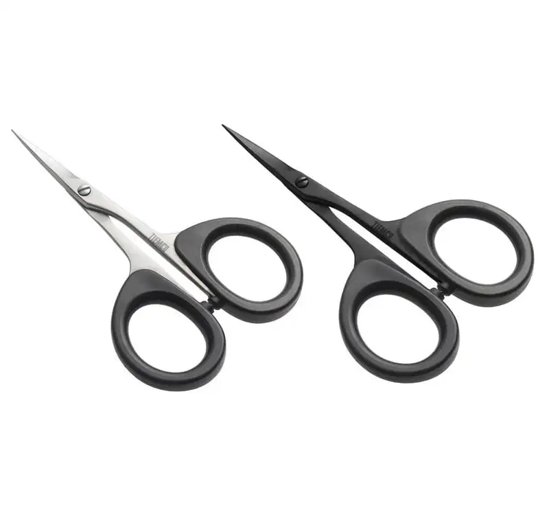 TMC TYING SCISSORS are the choice of tiers due to the large plastic finger loops which reduce the weight. The newly designed blades hold and cut not only fine thread but hair materials such as deer or elk. The large blades come handy then clipping flared hair.