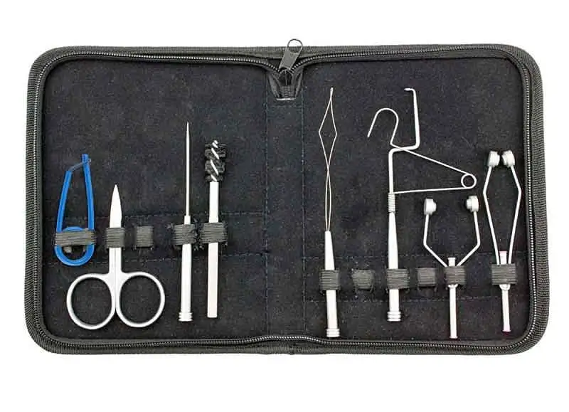 Ferdig sett med de viktigste verktøy til fluebindern.